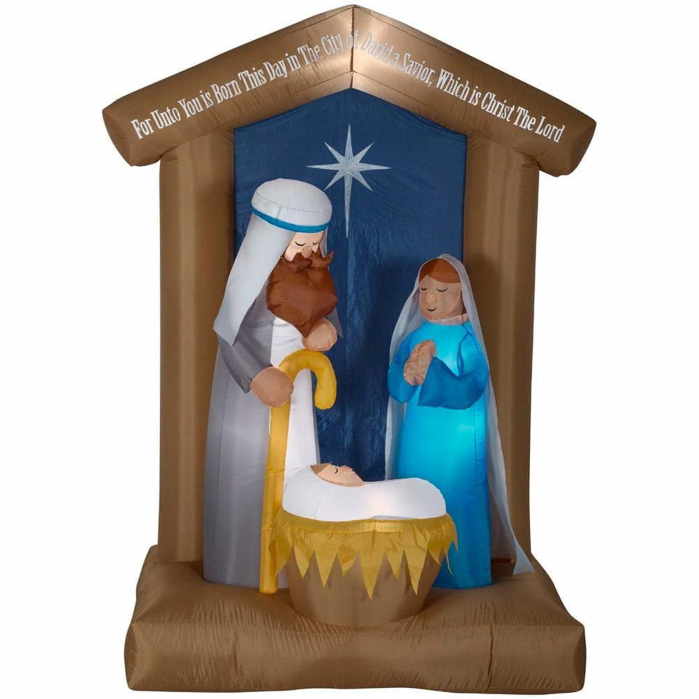 6' Pre-Lit Life Size Airblown Inflatable Nativity Scene ... from images.homedepot-static.com Nativity scene outdoor yard decoration. The nativity scene tells the christmas story with figurines of key biblical characters, including the baby jesus, mary, joseph and the three wise men. The nativity scene is emblematic of the christian christmas tradition. Find fun and bargain deals on nativity, home decor at oriental trading. This giant led lighted nativity scene from home accents holiday is constructed with a durable metal frame covered by a pvc tinsel coating to shine unfortunately, this home accents holiday sweet serenity 120 in. Arranging a manger scene allows you to explore the story of christmas each year, but is there a right or wrong way to do it? Free shipping on orders of $35+ and save 5% every day with your target redcard. Next, sand smooth all the clothes pins we don't really do the storefront christmas in our home, but.